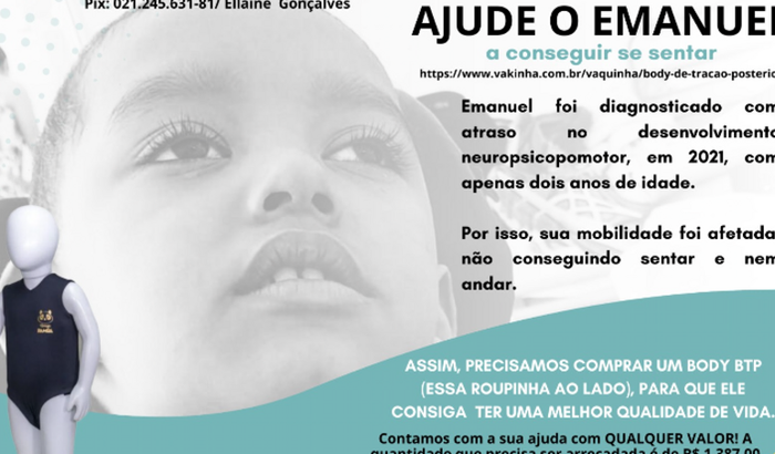 Vamos ajudar o Emanuel a ter uma boa postura e poder sentar da maneira correta? BODY BTP: Indicado para crianças que não tem controle do tronco ou crianças com escoliose. BTP significa body de tração posterior, então na prática ele vai "puxar para trás". É uma roupa compressiva considerada uma órtese dinâmica, desenvolvida com material respirável, fator de proteção UV50+, propriedade anti-odor e alta durabilidade. A malha é bem fresquinha e a parte em neoprene é respirável, para ter mais conforto.ele é todo ajustável com velcro, bem mais prático na hora de vestirEntre os benefícios terapêuticos, estão:alinhamento posturalestabilidade posturalReposicionamento funcional das articulaçõesMelhora da consciência corporal. O valor é R$ 1.387,00 no pix já com o desconto!