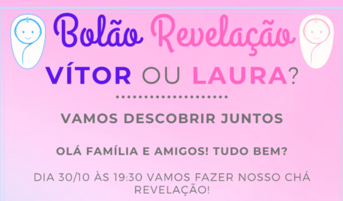 Dia 30/10 às 19:30 vamos fazer nosso chá revelação!