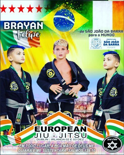 Eu sou Brayan Felipe atleta de jiu-jitsu tenho 8 anos ja conquistei muitas medalhas tanto no nosso Estado quanto fora. Agora irei disputa o tao solhado titulo EUROPEU KIDS na cidade de DUBLIN Na IRLANDA. Por isso fiz esua vaquinha pra ajurar nas despesas como : Transporte, hospedagem e alimentação. Desde ja agradaçãoa cada um.