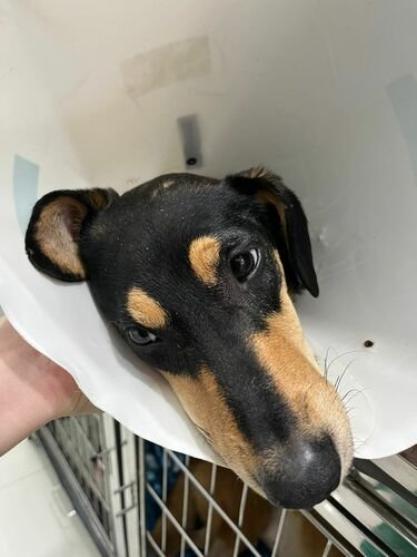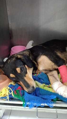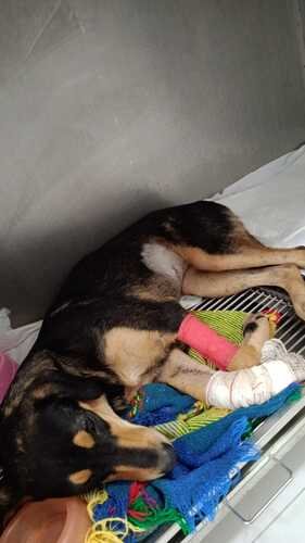 A cachorrinha Lom, com menos de um ano de idade, foi atropelada no dia 22 de abril em Caiobá, Matinhos-PR. Ela foi resgatada e encaminhada para a clínica 24h Medical Pet. Ela estava sem coleira, com pulgas e carrapatos e seu tutor não foi localizado (provavelmente foi abandonada na rua).