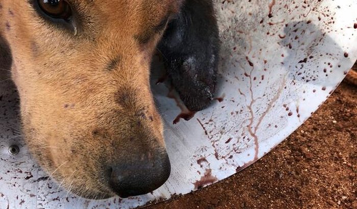 Pedido de ajuda ☹ esse cachorro apareceu com míase (bicheira) na orelha, algo muito grave pois além da dor os bichos podem chegar ao cérebro causando sérias sequelas e até mesmo ser fatal 😓😓😓😓 as 2 pessoas que pediram ajuda não podem oferecer lar temporário e nem pagar consulta e tratamento. O animal foi resgatado por nossa voluntária e levado ao veterinário, porém precisamos urgente de pagar a conta e lar temporário. Para ajudar PIX 32001746000140 ou 64) 992048392