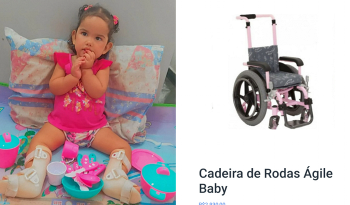 Olá! Somos André e Franciele, criamos essa vakinha para pedir ajuda no valor da cadeira de rodas para nossa filha Hellena.