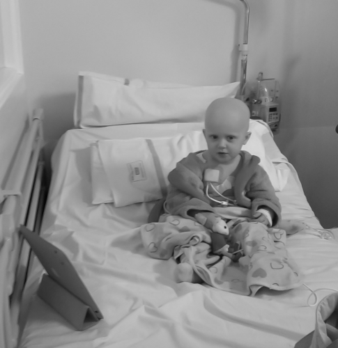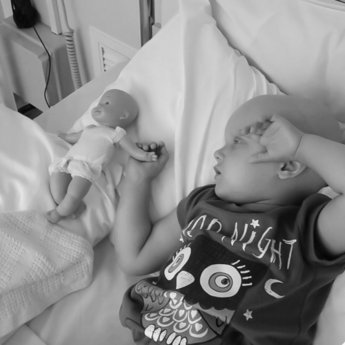 Os médicos inseriram uma sonda no nariz para ajudar a Maria Laura a receber a nutrição de que necessita. Sendo uma criança curiosa e ativa, Maria tentou inicialmente puxar o tubo.