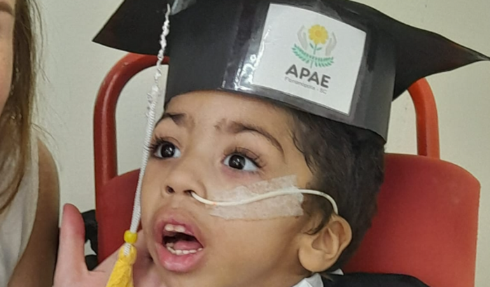 O Nicolas tem 5 anos  e é portador de  paralisia cerebral devido a uma hipóxia esquemica por negligência médica. Devido a esta lesão Cerebral um dos lugares mais afetados é o sistema motor que impossibilita de caminhar por isso hoje ele faz uso de uma cadeira de rodas para se locomover. Â