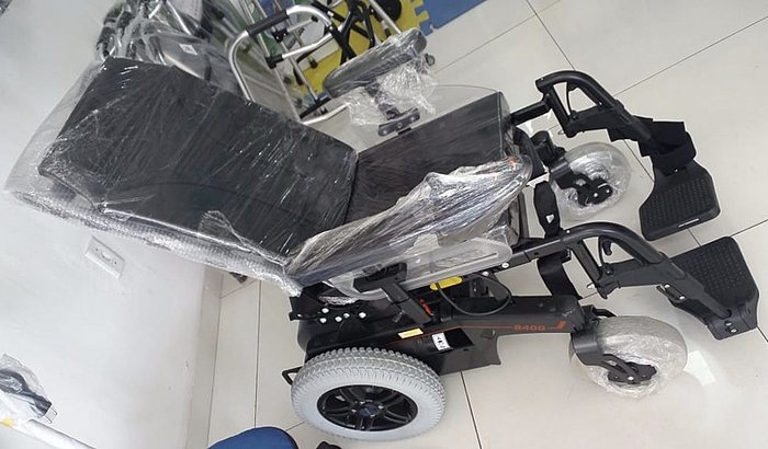 Cadeira de rodas reclinável e elétrica para Maria de Fatima Ferreira Silva, a Fatinha. Ela é uma paciente com lesão neurologica desde 2004 quando fez a retirada de um tumor menigioma da cabeça, o braço e a perna direita nao tem boa mobilidade,