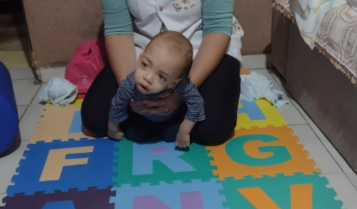 Sou a Renata mamãe do Gustavo, meu filho tem 1 ano e 7 meses, foi diagnosticado com uma doença genética rara, chamada Gangliosidose Tipo 1 (esse é o tipo mais agressivo da doença, quando se apresenta nos 6 primeiros meses de vida). Essa doença é caracterizada pelo acumulo de gangliosídeo, tanto no sistema nervoso visceral, quanto no central, devido a deficiência da enzima betagalactosidase, causando muitos danos e hoje pra medicina não tem cura, é uma doença neurodegenerativa. No caso do Gu ele não tem força motora nenhuma (hipotonia), nunca conseguiu sentar , nem apoiar a cabeça, muito menos engatinhar.