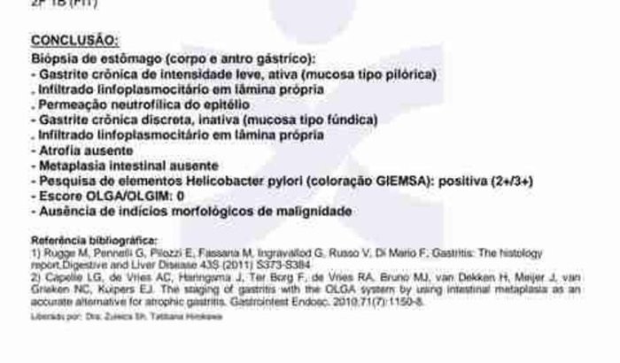 Bom fiz a endoscopia... fique assustado mas eles me deram um remédio e me passaram o tratamento so que é um valor muito alto cerca de 3000/3500 então peço a ajuda de vcs encarecidamente para acabar com isso Deus te abençoe e oq eu passei não desejo nem pro meu pior inimigo