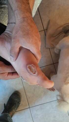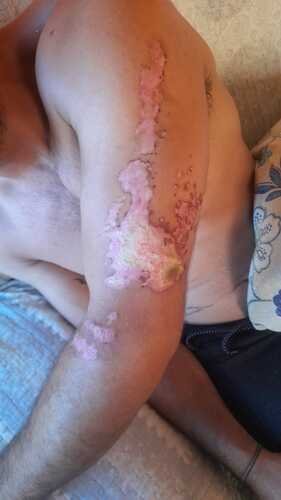 Essas são as marcas de queimadura que o choque de 13mil volts deixou ao sair pelo pé e braço esquerdo do querido José Netto!