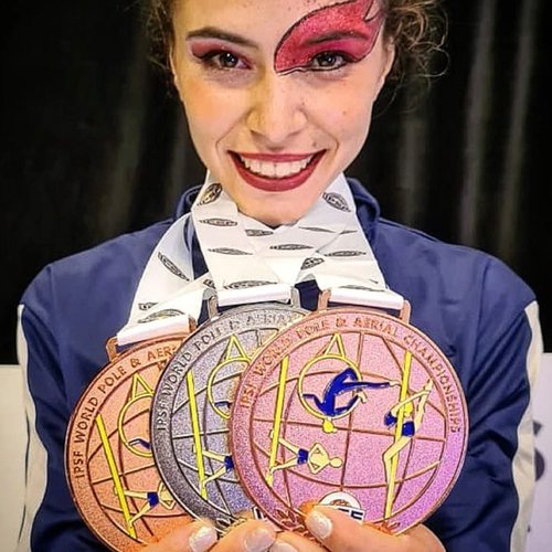 Sou a primeira atleta brasileira à conquistar 3 medalhas em uma mesma edição de um campeonato mundial. A única brasileira medalhista mundial na categoria senior individual (a mais concorrida do mundo ) e sou a brasileira com a maior nota em campeonatos mundiais de pole sport.