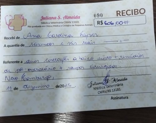 Eu fiz o transporte delas, que incluiu um banho no dia anterior à castração, e também estou responsável por admibistrar os medicamentos durante a recuperação. Agora conto contigo, para ressarcir os demais gastos e poder continuar ajudando outros animais.