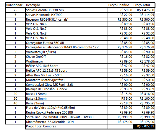 Em função das dificuldades financeiras, o grupo decidiu em 2019 realizar uma Vakinha, onde familiares, amigos e simpatizantes do projeto, possam contribuir com o desenvolvimento do projeto por meio da colaboração de qualquer valor. Para isso, foi realizado um orçamento, com os principais materiais para o desenvolvimento do presente ano, onde pode ser visualizado na tabela.