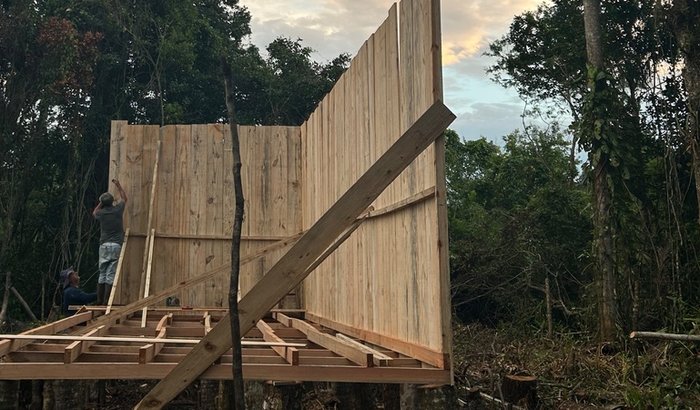 Com ajuda de parentes e amigos já demos o primeiro passo — começamos a construir com as próprias mãos, no meio da mata, com muito esforço e pouca condição.