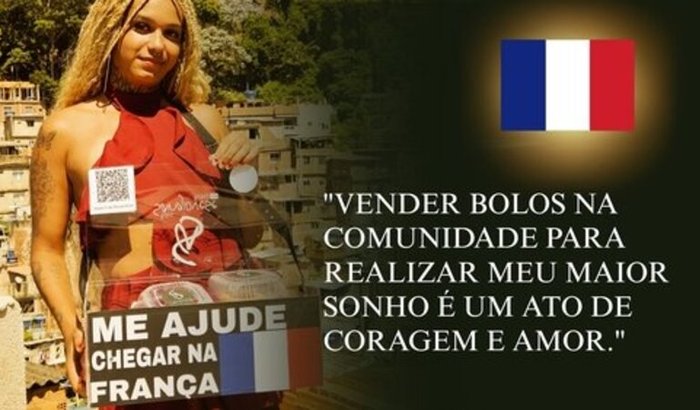 Olá, sou carol moradora da comunidade da rocinha, modelo, atriz e empreendedora, vou as ruas todos os dias vender meus bolos com o unico sonho.. estudar frances imersivo em paris, sou de uma familia humilde e nunca deixei de acreditar que um dia iria sair da comunidade e explorar o mundo, voce me ajuda nessa?
