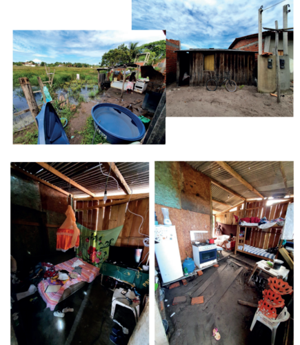 Atualmente a casa dessa família está sem condições de habitação, sendo a estrutura simples de madeira com telhado de eternit com muitos furos causando muitas goteiras e infiltrações além do calor excessivo. O piso é batido de terra e o terreno está em um nível baixo e fica alagado pela lagoa a maior parte do tempo. A casa não possui banheiro nem tratamento de esgoto.