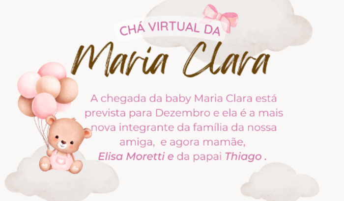 Olá! Criamos uma vakinha para ajudar nas comprinhas de fraldas da Maria Clara, bebê da Elisa Moretti que irá chegar em meados de Dezembro :)