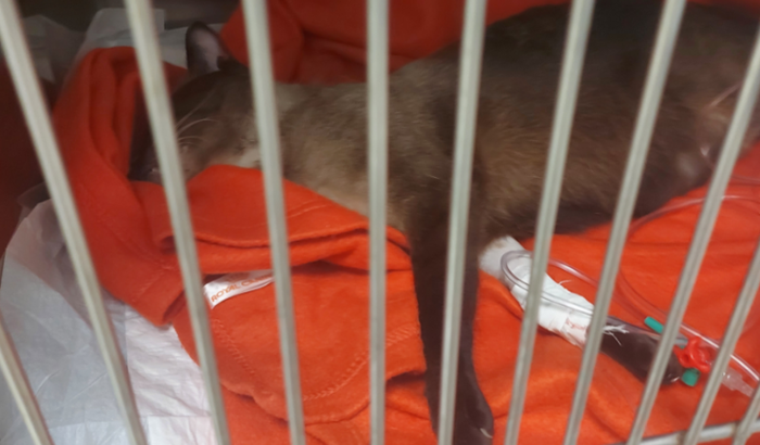 Olá, pessoal! Esse gatinho da foto é o Chocolatinho e ele está novamente com obstrução urinária. No último fim de semana ele parou de urinar novamente e começou a manifestar sintomas de dor intensa. Levamos ao veterinário e o diagnóstico foi de obstrução urinária novamente. Foi feito o procedimento de desobstrução e ele precisou ser internado. Precisamos muito de ajuda para custear os gastos da internação, consulta e demais procedimentos. Ajude o Chocolatinho, por favor!