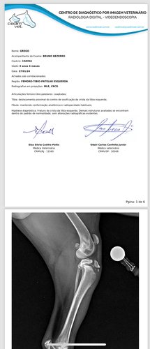 Olá me chamo Bruno tenho um filhote de Pit monster no dia 16/01/24 teve um temporal na minha região e meu Dog chamado Grego sempre fica na garagem e a noite fechamos a garagem e tem acesso uma porta da garagem para dentro de casa então ele se agitou de mais se assustou ele começou a dar pulos para tentar abrir a porta como eu trabalho de noite ele tava sozinho na garagem eu cheguei de manhã do trabalho ele estava mancando dei um anti-flamatorio para ele mas não resolveu levei no veterinário fez raio e veio a notícia que eu não queria escutar fratura na Tíbia: deslocamento proximal do centro de ossificação da crista da tíbia esquerda; ele vai precisar de cirurgia para implante, anestesia, exame de sangue raio x trans operatório eu não sei o que fazer e não tenho esse valor venho aqui pedir uma ajuda ele um bebê de 7 meses