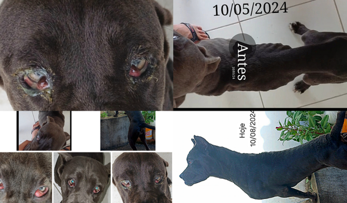 Olá. Sou Yohan, tutor da cadela que resgatei novinha mas ela veio com algumas doenças que eu fui cuidando no decorrer do seu crescimento. Teve desnutrição , chegou muito medrosa e debilitada, com queda de pelos e bem magra, e as glândulas lacrimais oculares saíram de dentro do globo ocular, (Olho de Cereja), e eu não tive mais condições de arcar com as despesas e custos com cuidados pois o caso dela é cirúrgico.