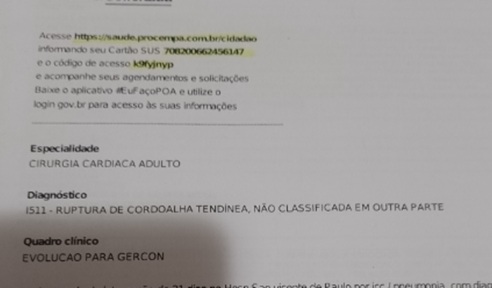 Olá me chamo Carlos Perotti tive um infarto início de junho tive int rnado com pneumonia gravíssima com água no pulmão tive que fazer uma drenagem e ficar no oxigênio.tambem tive uma válvula nitral rompida do coração agora tenho que fazer uma cirurgia no coração em POA tô aguardando no gecom na fila de espera, quase toda semana tenho que estar no UPA fazendo exames como eletrocardiograma raio-x ficar internado tomando diurético direto na veia usando sonda.