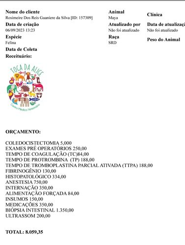 Maya é uma gatinha de 8 aninhos linda meiga e carinhosa, que desenvolveu um problema sério na vesícula que esta afetando todo seu metabolismo, fígado ,rins e intestino já estão sendo afetados, precisa realizar cirurgia que se chama COLEDOCISTECTOMIA, que consiste em retirada da vesícula. Se essa cirurgia não for realizada mesmo com o tratamento paleativo ela irá definhar até a morte. É uma cirurgia cara que tem que ser realizada por especialista.