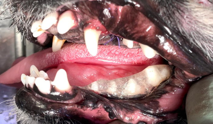 Bibi fraturou mandíbula devido uma bactéria na estrutura óssea. Como tenho 10 cães adotados fica difícil arcar com as despesas, pois ela irá fazer outro procedimento cirúrgico quando for retirar a resina. A resina ela colocou pra fixar a estrutura óssea e colocou inxerto também. Toda ajuda será bem vinda . Bibi tem nove anos, tdos cães que tenho tirei de uma situação ruim. Obrigada a tdos 🙏🏼💗