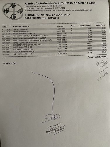 Inicialmente, o custo da cirurgia é de R$1.600,00. Digo inicial porque a veterinária informou que pode haver mais tumores internos, o que aumentará o valor da cirurgia, mas só tem como saber na hora.