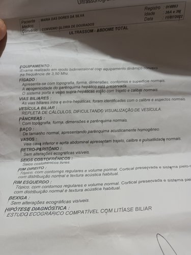 Gente desde janeiro 2022 comecei senti fortes dores no estômago foi quando fui no médico  e ele min pediu pra fazer uma ultrassom aEntão eu consegui fazer a descobri que a dor que eu sentia na boca dos estômago na verdade era pedra na vesíc ver tudo