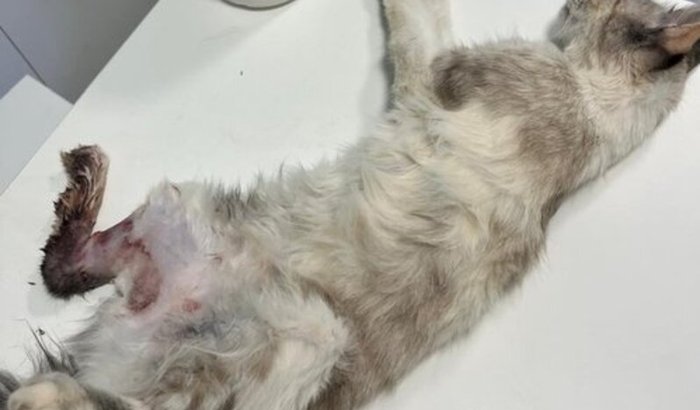 O veterinário explicou que ela precisa de uma cirurgia urgente pra tentar salvar a patinha.