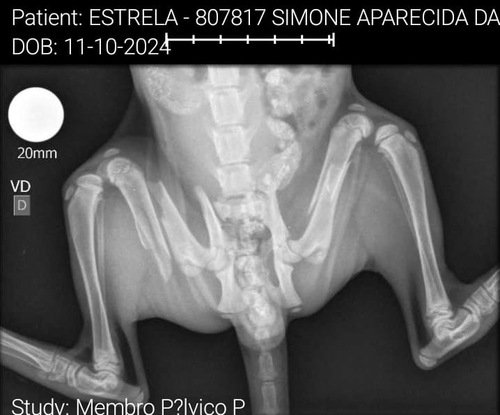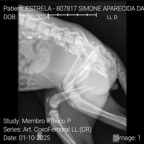 Levamos ela no hospital público, porém eles não fazem a cirurgia por ser ainda muito pequena, a prefeitura não manda placas tão pequenas. Não Temos condições no momento de fazer a cirurgia das patinhas.
