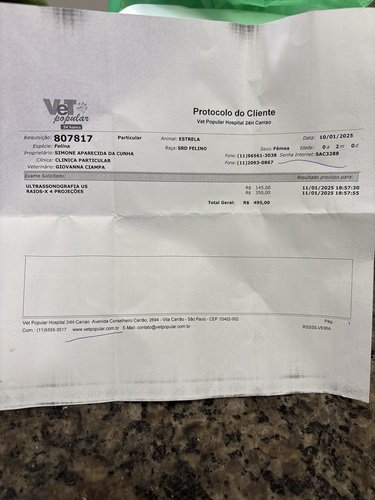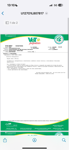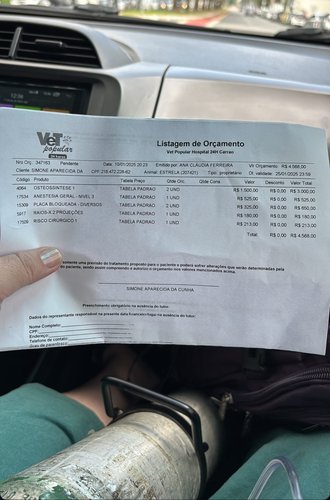 Não temos como arcar com a cirurgia, sem ajuda de vocês. Conseguimos fazer os exames de RX e ultrassom para preparar ela para a cirurgia. Porém, não temos mais como fazer os demais exames e a cirurgia.