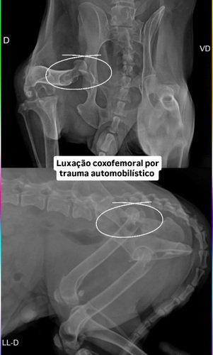 Os veterinários descobriram que eu tive uma luxação coxofemoral por trauma automobilístico.