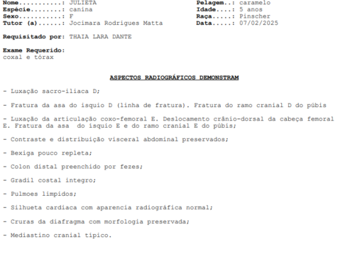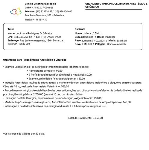 O acidente causou múltiplas fraturas na pelve e uma luxação na perna, e sem o tratamento adequado, ela pode ficar com sequelas permanentes. Infelizmente, o custo total do procedimento ficou em R$ 3.860,00, um valor que, no momento, não consigo arcar sozinha.