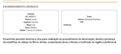 Eu sou a Eduarda e criei essa vakinha para arrecadar o valor da cirurgia da minha Pet. A Luna é minha companheira há 7 anos e sempre foi uma cachorrinha muito ativa e alegre. Acabou desenvolvendo uma doença chamada displasia coxofemoral, que acomete cachorros de grande porte e necessita de cirurgia nas duas patinhas traseiras. O valor total da cirurgia é de R$ 2.200,00 na ong e lhe dará uma melhor qualidade de vida sem dor. Me ajude nessa missão!