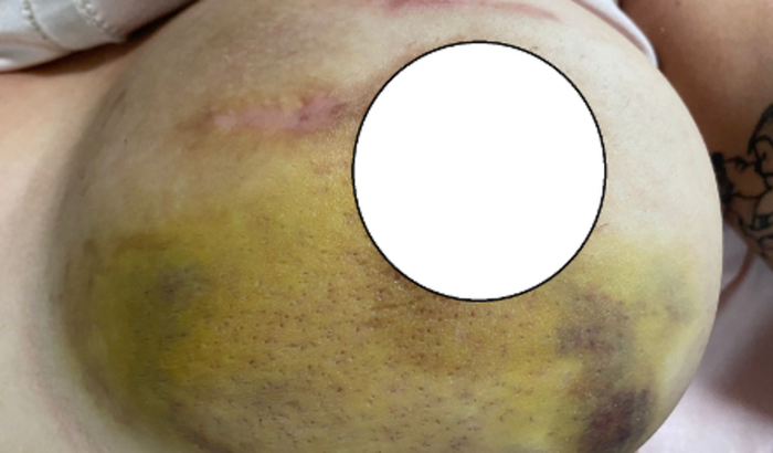 Chegando em SP fui direto pro hospital, eles me internaram em seguida, fiquei 8 dias internada tomando antibióticos na veia porém nada desinchava, desempedrava, saia o roxo/vermelhidão e nem a tal inflamação. Fiz minha primeira Ultra, pq era e é impossível de tocar, eu passei durante a ultra gritando de de dor por pressionar, o médico disse ‘e apenas uma mastite, daqui 3 dias vc tá bem’, sai de lá chorando de dor porém feliz pelo o que ele tinha me falado. Se passaram mais três dias e não melhorou, então os médicos decidiram fazer um pulsionamento com agulha e anestesia local pra ver se conseguiam drenar, infelizmente só saiu 2ml de pus o que não foi suficiente para os médicos, eu senti muita dor e estava sozinha, as vezes eu olhava pro lado pra segurar minha mão, mas não tinha ninguém, tinha um enfermeiro no qual me deu força pra aguentar, mesmo com anestesia local vendo uma agulha giganta entrando no meu seio por diversas vezes.
