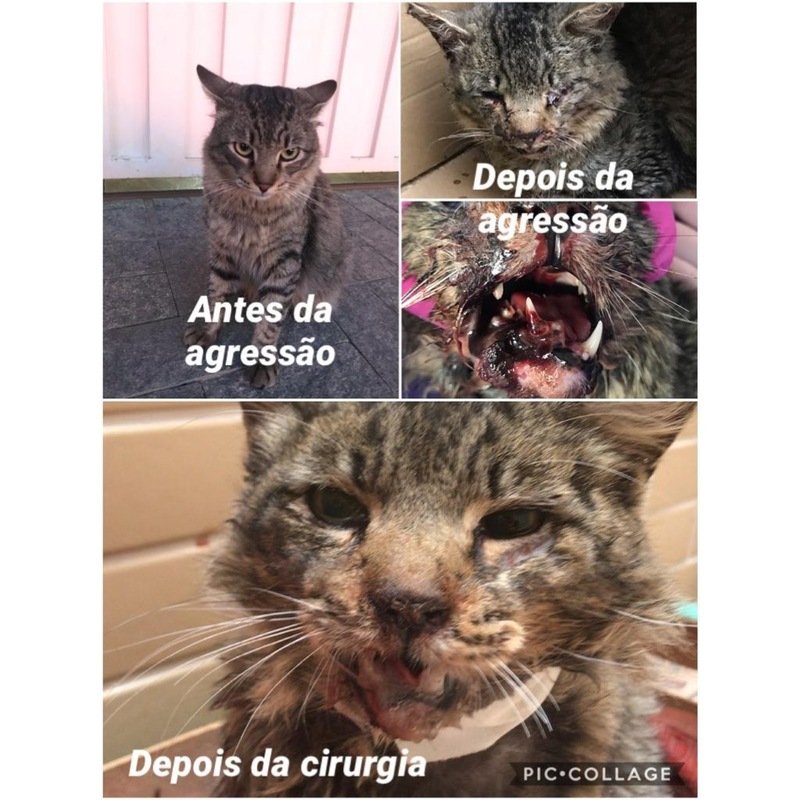 O Meninão, gato da foto, mora na rua da minha casa e sofreu agressão de alguma pessoa, chute ou pancada, que acabou fraturando a mandíbula dele em diferentes lugares. Ele teve que fazer cirurgia senão não iria resistir aos ferimentos. A cirurgia foi realizada na clínica Odontológica Veterinária Bevet, em Taubaté, pelo veterinário Leonel Rocha (CRMV 7078-SP). A vaquinha é apenas para cobrir a cirurgia, que ficou no valor de R$1.650,00.