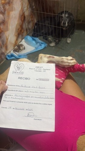 Olá, me chamo Andressa e sou amante dos animais ! Cuido de alguns animais de rua e Melissa é uma delas , melissa tem 1 ano e 2 meses aproximadamente , pegou cria no primeiro cio, eu cuidei temporariamente , nasceu os filhotes fiz doação responsável e foi lindo , eu castrei ela com meus recursos a duas semanas e a dois dias ela foi atropelada e abriu a barriga novamente e quebrou a pata ! Melissa eh dócil ! Já adotei 7 gatos e 2 cachorros não tenho mais espaço e nem recursos ! Essa cirurgia ficou em 1200 e já comprei a medicação ! Se Jesus tocar em seu coração nos ajude a cuidar dela pra eu poder cuidar dos outros animais da rua ! Gratidão que Deus abençoe