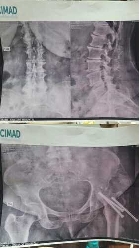 Voltou ao médico esse ano para um “retorno”, pois não aguenta de dor e está com o andar torto e voltou a usar bengala, pois não consegue andar sem apoio. Sugeriu uma cirurgia para colocar prótese, pois os parafusos estão soltando (conforme foto da radiografia), além de estar com o quadril extremamente torto e comprometido. Ela sente muita dor, e sempre toma remédios fortes para tentar alívio momentâneo. Como sabemos, o SUS demora muito tempo, mesmo sendo um caso urgente o médico deu pelo menos 1 ano de espera.