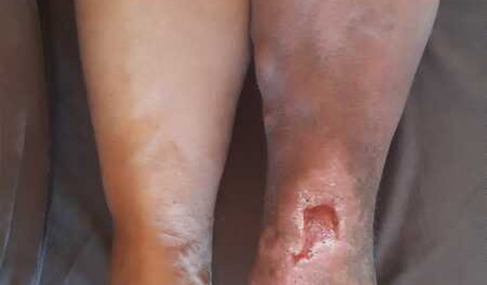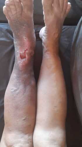 Em outubro/2021 passei 3 meses internada, infelizmente entrou uma bactéria pela úlcera, fui internada novamente em fevereiro/2022 aonde passei 1 mês no hospital, sentir muitas dores, abriu muitas feridas devido a perna ter ficado 3x maior com muitos remédios ficou apenas uma ferida que faço curativo 3x por semana, por causa da perna inflamada tem meses que não cicatriza, o processo e lento.
