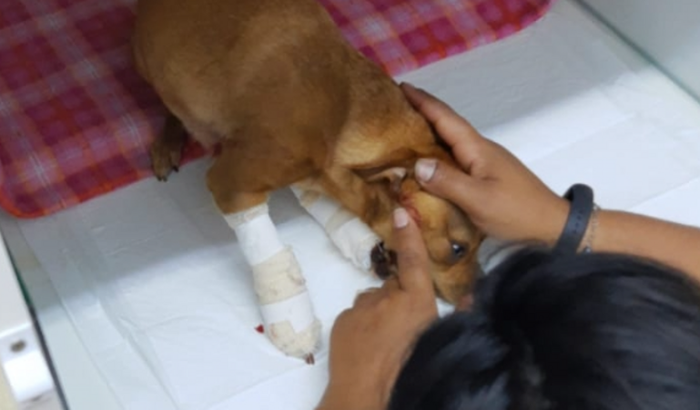 Pitty estava brincando com outros cães na rua hoje, 18/09/22, quando foi atropelada e quebrou as patinhas da frente. Levamos para clínica veterinária pois saia muito sangue da fratura exposta. Lá nos informaram que ela necessita de cirurgia e só fazem após pagamento. Ficou internada para tomar medicação e aguardar pelo pagamento.