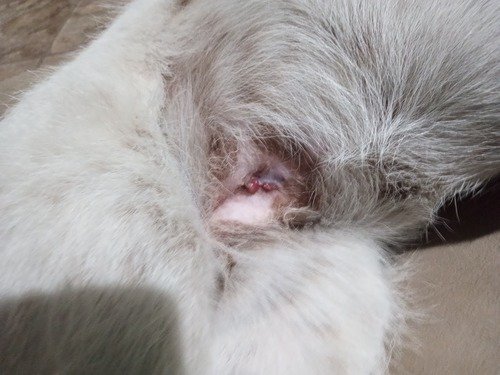 Pessoal a véia foi abandonada a uns dois anos na rua aqui do condomínio onde moro, castraram ela e largaram aqui na rua desde então alguns moradores incluindo eu, cuidamos dela, alimentamos… a um mês mais ou menos eu notei que a véia estava mechendo muito na barriga na região onde foi feito os pontos da castração e levei pra consultar com o Dr Cristiano Machado que tem um projeto de baixo custo de consultas, castração… em Alvorada/RS . Ele a examinou e viu que ela esta com dois tumores no local onde haviam feito a castração dela, disse que precisa operar abrir e retirar por completo pois está externo e interno, isso ocorre quando o médico que faz a castração deixa o nylon exposto isso gera bactérias… e da rejeição ao nylon por estar contaminado… não sabemos onde foi castrada nem quem castrou ela 😞.