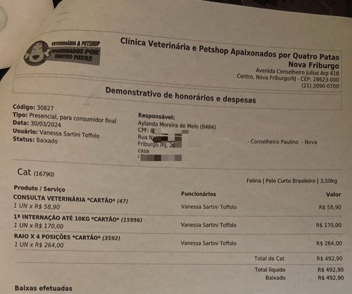 Bom dia, Me Chamo Rosania, estou realizando uma vakinha no valor de R$ 2000,00 pra arcar com os custos de uma cirurgia do colocefalectomia no fêmur direito para um gatinho de rua que foi atropelado, minha filha o resgatou e estamos acompanhando a situação os documentos estão no nome dela, criei a vakinha para ajudar na cirurgia.Estamos dando um lar temporario para ele no momento deixando ele o mais confortavel possivel, ele está com a coleira pois ele tenta fugir o tempo todo pra rua, estamos arcando com os remédios e a consulta, ele também está com Esporotricose que estamos tratando com medicação, porém a cirurgia é mais do que eu posso fornecer sozinha no momento para ajudá-lo. Conto com a sua ajuda. Deus abençoe.