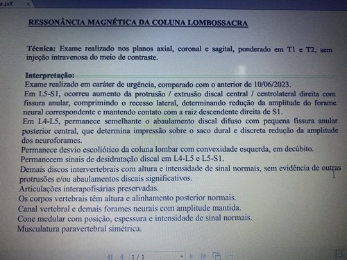 Olá, sou a Thainar, tenho 24 anos. Estou desde o dia 04/10/2023 em casa por complicações na minha coluna. Uma hérnia de disco aumentou bastante na minha coluna, gerando uma extrusão onde aperta o meu nervo ciático e acabou inflamando o nervo.