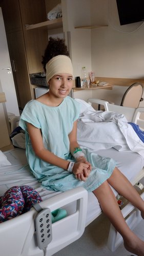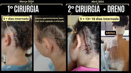 Olá, aqui é a Rosiane e o Gilberto, mãe e pai da Gloria. Ela fez uma cirurgia para remoção de uma lesão cerebral em 15 de março de 2024 e tudo parecia bem. Mas em 27 de março apresentou a primeira complicação, houve um vazamento de líquido na cirurgia.