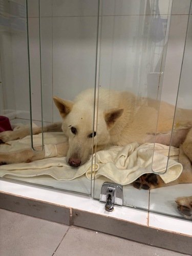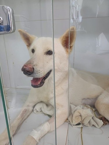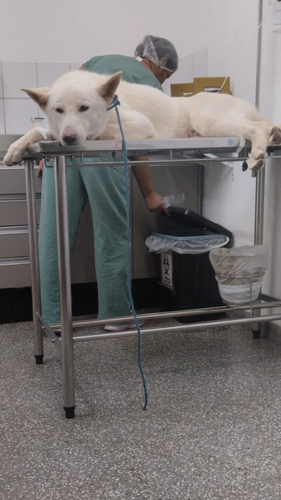 Niko adora chuva e costumava ficar na área externa, por isso estava ali no momento do acidente. Conseguimos tirá-lo dos escombros e, com muito esforço, o levamos ao veterinário, onde foi diagnosticado com uma ruptura na bexiga. Imediatamente, ele recebeu medicação para dor e passou por exames, mas o tratamento exige uma cirurgia de urgência.