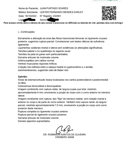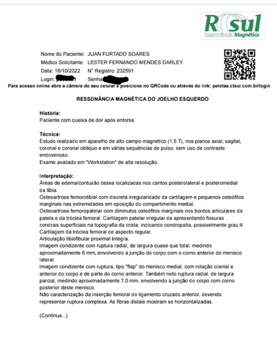 Meu nome é Juan sofri uma intorsse no joelho esquerdo e essa lesão está muito grave já faz 4 anos que venho lutando para conseguir fazer essa cirurgia mas por falta de condições financeiras não consegui fazer e agora essa lesão se agravo muito e está me impossibilitado de trabalhar tenho que pagar minhas contas e o valor da cirurgia é muito alto, venho por meio dessa ação pedir ajuda de vocês para que eu possa fazer essa cirurgia e poder viver uma vida normal para mais informações entrar em contato comigo pelo meu whatsapp (53)999508471 desde já agradeço.