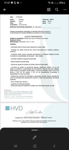 Hoje o Parafina está medicado (PETPRAZOL, FENOBARBITAL/GARDENAL e PREDIDERM) para controle do líquido que tem entre o cérebro e o crânio e controle das convulsões, enquanto aguarda conseguirmos fazer a cirurgia.