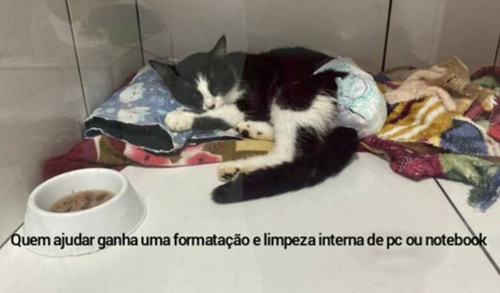 (Quem ajudar e tiver um pc ou notebook precisando formatar, ganha uma formatação e limpesa interna.) ( Obs: Em Vitoria da Conquista) Gatinha resgatada, parida a uma semana, teve prolapso retal e teve q fazer cirurgia de emergência. Logo será castrada. O gasto não é pouco, por isso estou fazendo a vakinha p custear o tratamento, pois tenho mais 12 gatos e 3 cachorros resgatadas. Sempre custiei td , mas agora infelizmente nao estou em uma boa situação financeira. Então quem puder ajudar tenho certeza q será recompensado com as bênçãos de Deus. pix da vakinha 4546590@vakinha.com.br