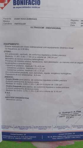 Evany Rosa Guimarães foi diagnosticada com um mioma uterino medindo 7,5 X 6,0 e precisa de realizar uma cirurgia, que pelo SUS é muito demorado e na rede particular custa em torno de 12 mil reais,