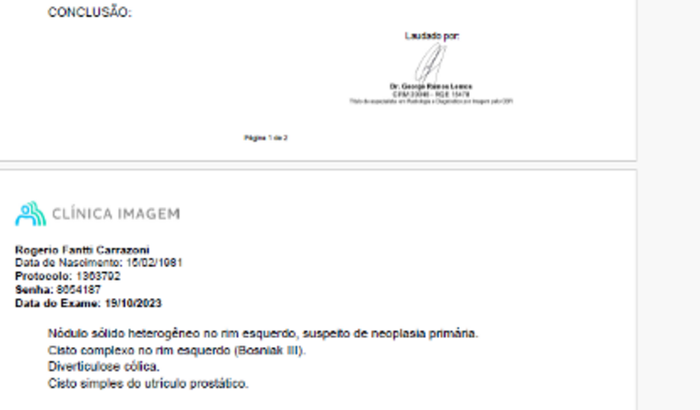 Sou Rogerio, e acabei de descobrir que tenho no rim esquerdo , um cisto classificação bosniak III, + um nódulo com neoplasia, sendo necessaria breve intervençao cirurgica afim de que nao se alastre e atinja a corrente sanguinia, o que diminui muito as chances de cura. Faço esta vaquinha com o intuito de acelerar o processo pois, pelo sus e muito demorado e a demora no meu caso pode ser decisivo para cura ou não. A cirurgia a ser feita e para retirada do rim junto com as lesoes.