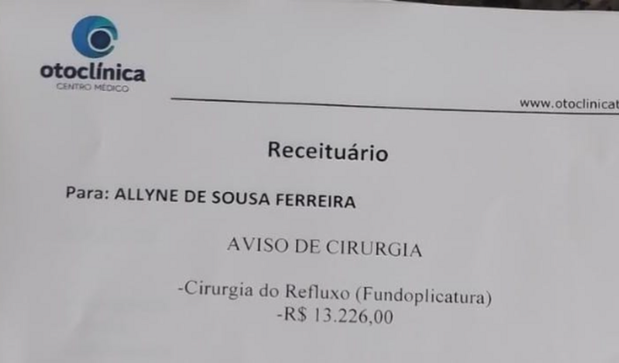 Eu me chamo Allyne, recentemente sentie algumas incomodacoes que nã conseguia me alimentar mais direito, chegue a perder quase 20kg pois as vezes s conseguia tomar leite o dia todo, fui ao médico e ele me passou alguns exames para fazer, e segundo os exames preciso fazer uma cirurgia de Refluxo; fora outro exames e medicaçõe que tenho que conseguir, venho mediante desta vaquinha pedir sua ajuda para poder fazer a cirurgia que está custando 15 Mil, tenho 60 dias para poder fazer essa cirurgia e não tenho condições financeiras para esse valor, sou mãe de 3 filhas eu e meu espos somos trabalhadores autônomos oqu ganhamo da para manter a casa e as as crianças., infelizmente fui acometid por esta situação e precios da sua doação.